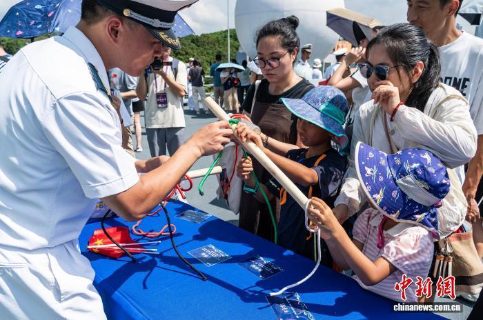 澳门市民王女士一家五口特意来香港参观。她由衷感慨:“此次活动特别有意义。”同行的孩子们还特意戴上了中国人民解放军驻澳门部队的纪念帽子,被问及参观感受时,他们连声夸赞:“海军哥哥姐姐们讲解很有耐心。”