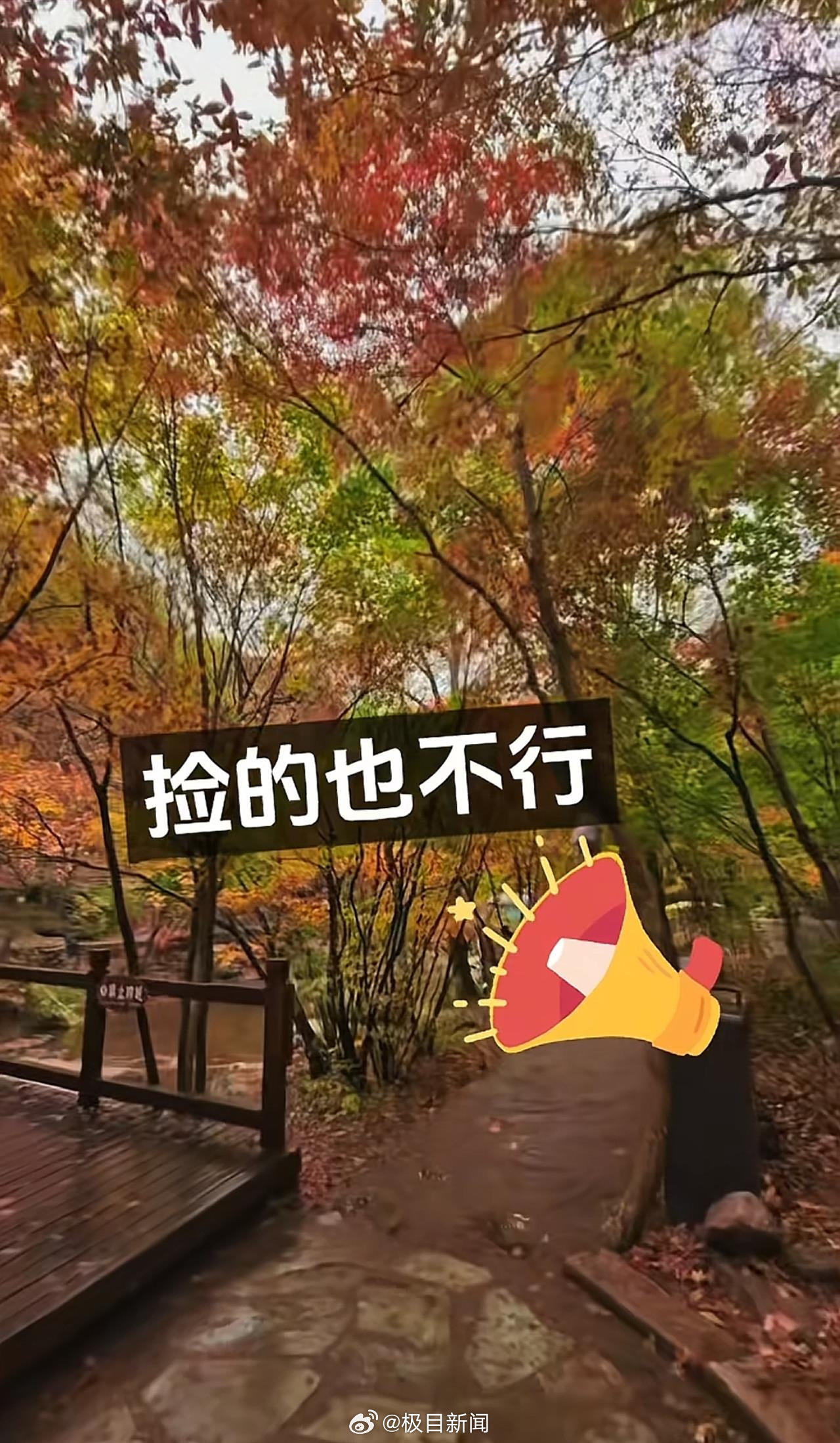 近日,有网友发布视频,在辽宁本溪的老边沟景区,有广播提醒游客:禁止采摘枫叶、手持枫叶,捡的也不行。