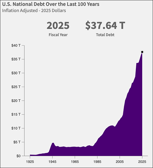 1925年至2025年美国国债规模增长趋势 美国财政部