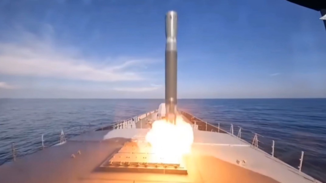 “锆石”导弹脱离护卫舰垂直发射装置瞬间