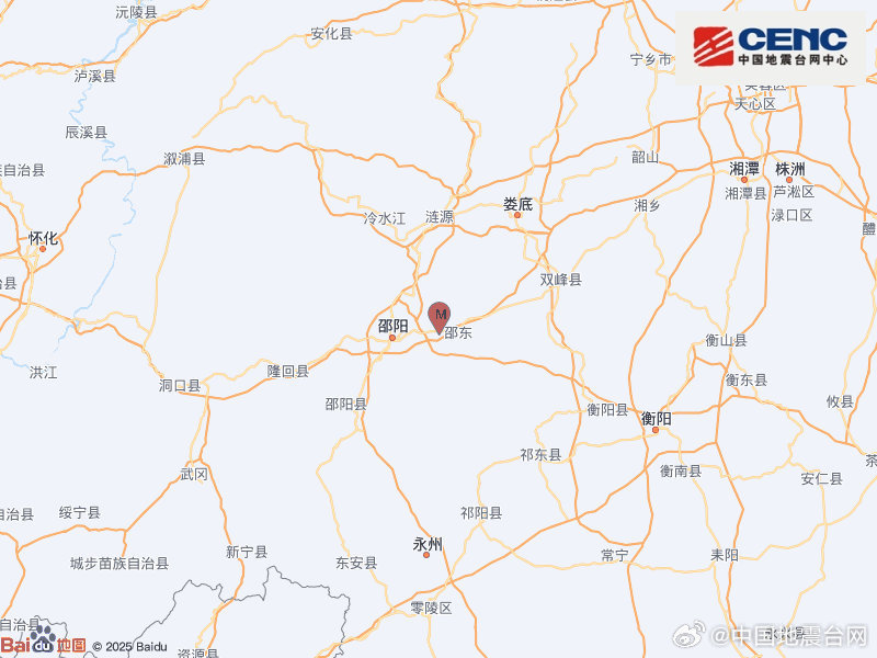 中国地震台网此前消息显示,10月3日,邵东市(塌陷)(北纬27.28度,东经111.64度)曾发生3.7级地震。10月4日,邵东市(塌陷)(北纬27.30度,东经111.67度)发生2.0级地震。