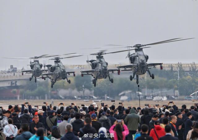 陆军3型11架直升机以精准默契的编队动作惊艳亮相,以磅礴气势划破长空,先后演示了双机对冲、四机开花等多个课目的特技飞行动作。飞行中,直-20T突击型直升机首次在直博会上进行飞行表演,完成双机对冲、四机开花等高难度动作,引发观众阵阵惊叹。随后,2架民用直升机接续展演,呈现了一场兼具视觉冲击力与技术观赏性的空中盛宴。