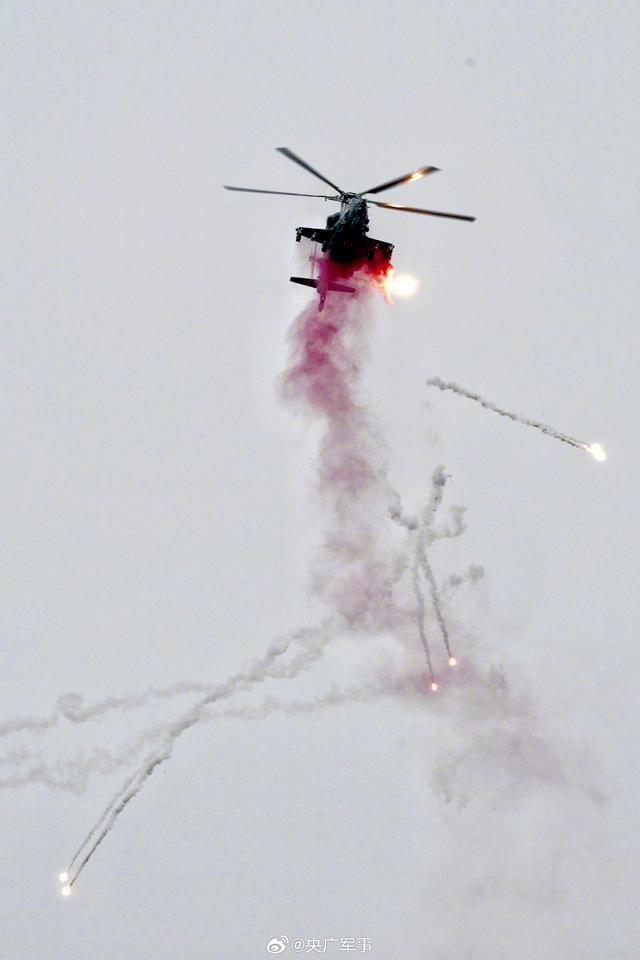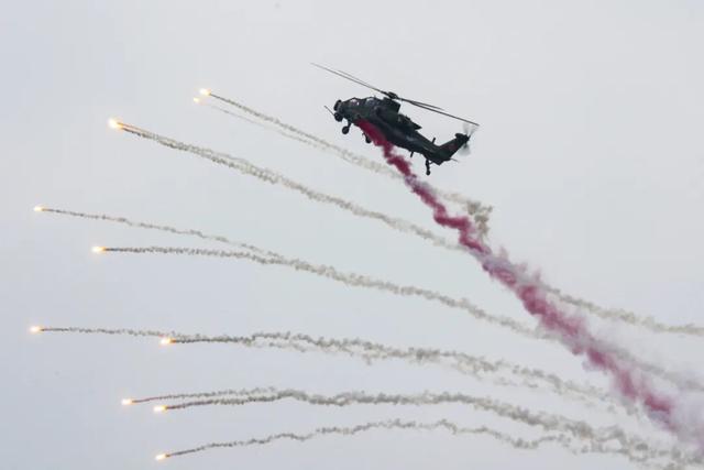 陆军“风雷”飞行表演队进行飞行表演。直-10武装直升机。张永进/新华社 图