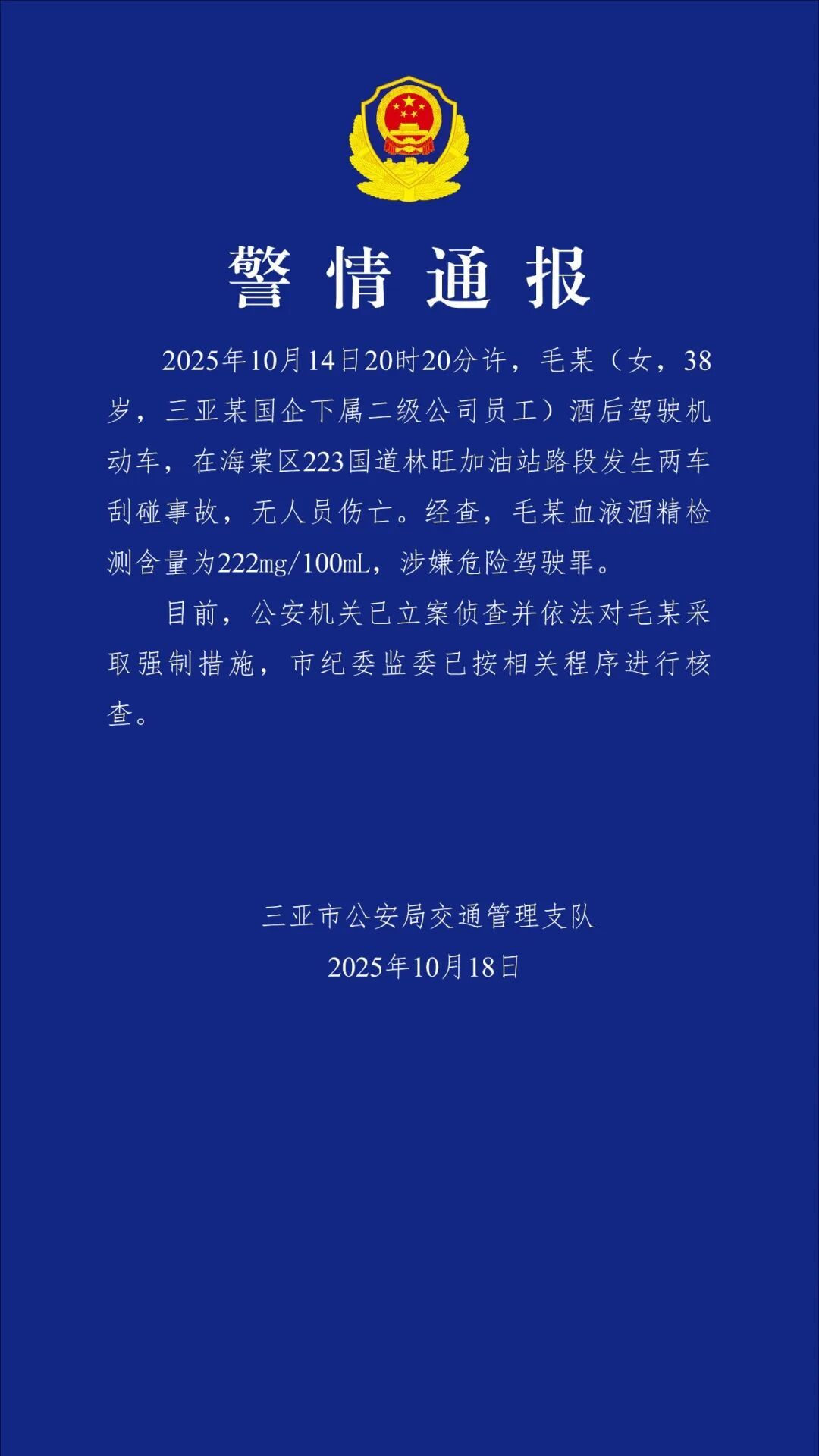 早前报道:海南一女子酒后倒车撞劳斯莱斯,扬言“我是国企的,让市政府通报我”