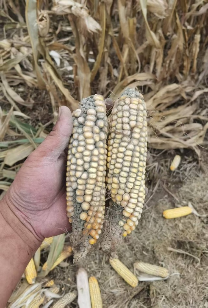 当玉米含水量超过14%时,就有霉菌生长的风险,含水量越高发霉速度越快,而今年部分玉米的含水量已经达到40%。陈星宇估计,今年自家玉米的发霉率将近70%。