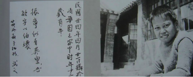 杨振宁13岁照片,其父杨武之题字“振宁似有异禀”。 图源:清华大学官方微信公众号