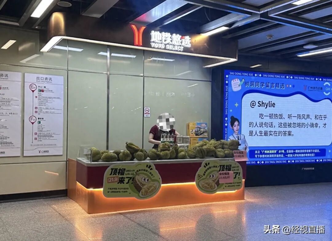 近日,有网友发帖称,在广州地铁东山口站大厅内的“地铁悠选”商铺看到现场售卖榴莲,浓郁的刺激性气味在站厅内弥漫,引发网络热议。
