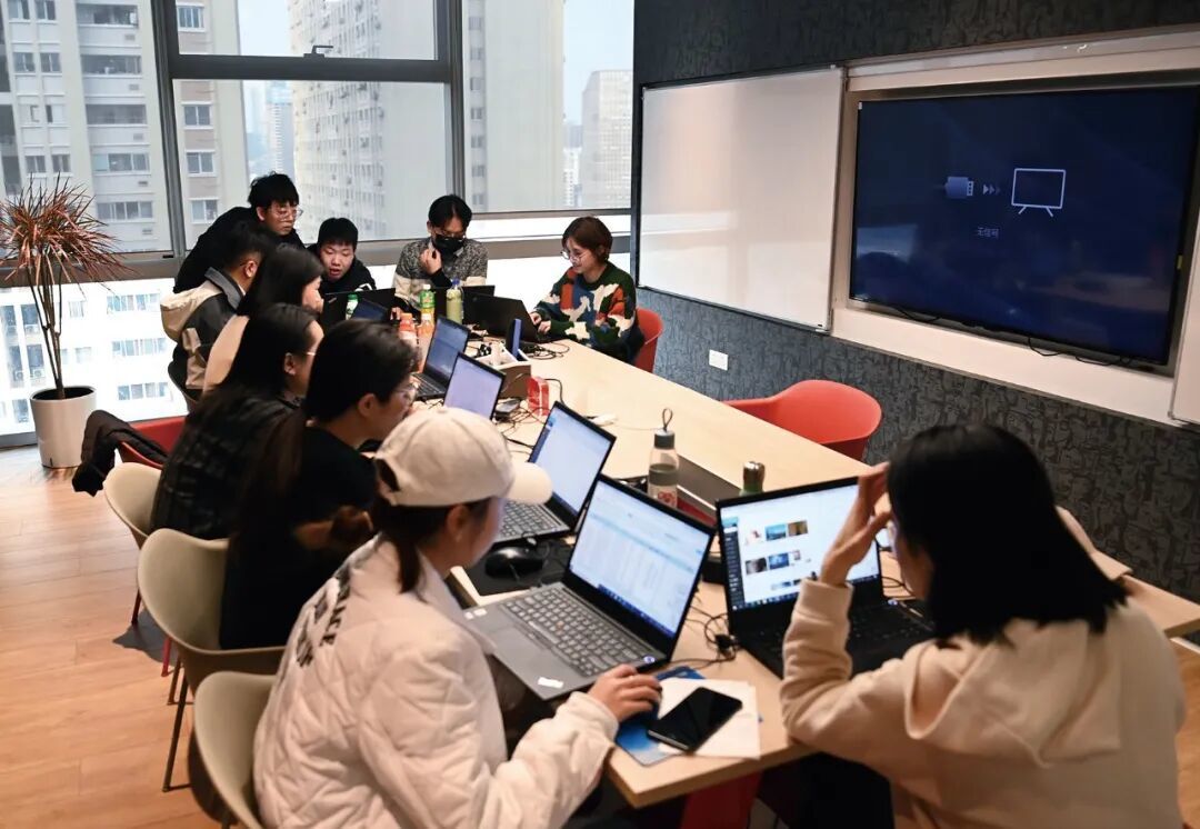 2021年12月3日,湖北武汉。一家企业在研究小红书。(图/CFP)