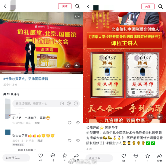 伴随着津云新闻记者的进一步深入调查,两家名为伯礼医堂(北京)国医馆、北京伯礼中医院的个人独资企业浮出水面。社交平台上多位网友曾公开发布以“伯礼中医院”、“伯礼医堂(北京)国医堂”为名联合举办的线下“赋能大会”、线下“学术交流会”。