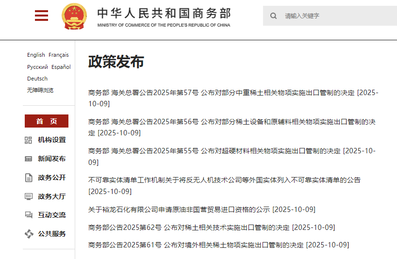 财联社11月7日电,商务部、海关总署公告,经批准,自即日起至2026年11月10日,商务部、海关总署公告2025年第55号、56号、57号、58号,及商务部公告2025年第61号、62号暂停实施。