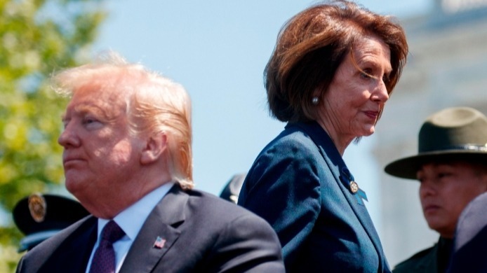 佩洛西和特朗普之间也经常发生冲突,尤其是在特朗普的第一个总统任期期间,当时佩洛西是美国民主党与特朗普对抗的带头人物。2020年,特朗普在国会准备发表国情咨文演讲前公开拒绝与佩洛西握手,而佩洛西则在演讲最后当众将手中的讲稿副本撕成了两半。佩洛西还曾两次主持众议院弹劾特朗普。